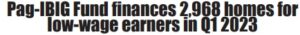 Pag-IBIG Fundhas financed 2,968 socialized homes for minimum-wage and low-income members in the firstthree months of 2023,...
