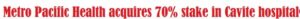 METRO PacificHealth Corp. (MPH) saidon Tuesday that it hadinvested and acquired a70.4% stake in MedicalCenter Imus (MCI)...