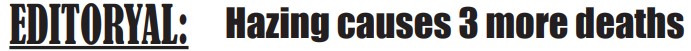 If there’s a scourge that should be expunged to prevent more needless deaths, it’s hazing.